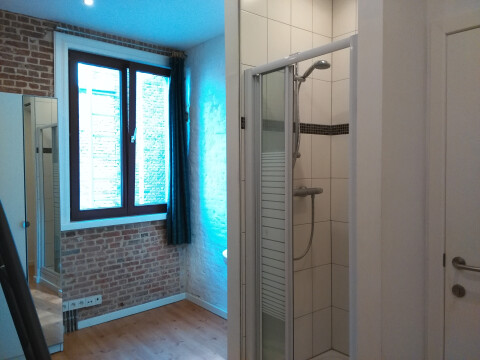 Deze mooie studio is rustig gelegen op de 2de verdieping in een studentenhuis. In het gebouw zijn 7 studio's met eigen keuken en douche. Er zijn 2 toiletten voor 7 personen (glv+2de verd).