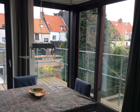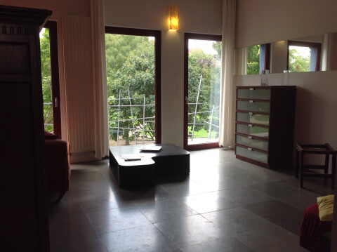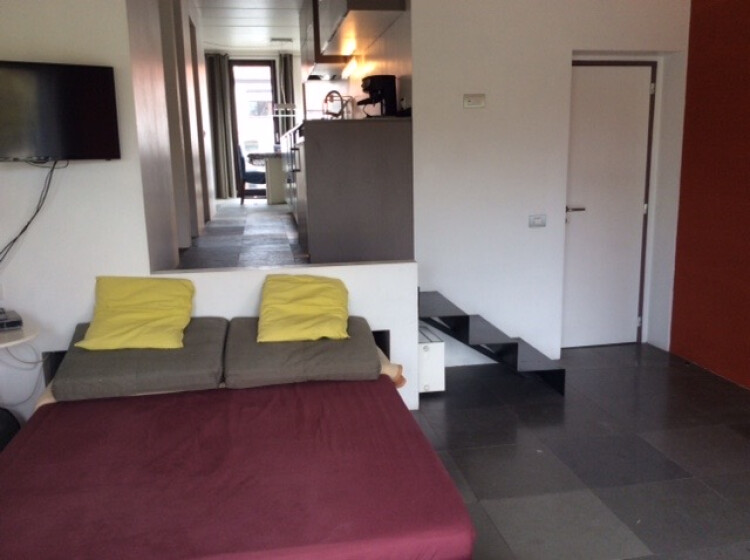 In the studio you can find a fully equiped kitchen and an eating area connected to the terrace. The batroom has a shower and the toilet is in a seperateare in room. The living area is on the frontside of the house with the balcony facing the park. At night this area is transformed to a sleeping area, thanks to a high quality queensize bed on wheels