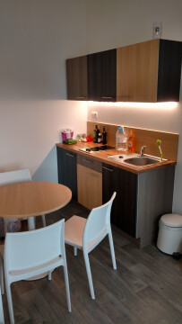 De studentenhome is voorzien van fietsenstalling, 2 dakterrassen, tuin en gemeenschappelijke ruimtes incl. keuken.