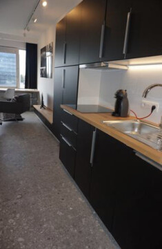 Op de 8° verdieping van dit appartementencomplex, een studio volledig ingericht, comfortabel bed, volledig ingerichte keuken met vaatwas en combi-oven, de badkamer met inloopdouche, hangtoilet en was-droogautomaat. Alle bed-badlinnen en huisraad is voorzien.